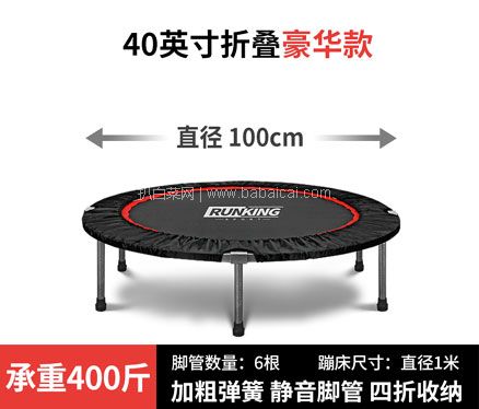 天猫商城 睿劲旗舰店睿劲 室内可收纳蹦床,现价¥109起,叠加¥50优惠券,券后史低¥59起包邮到手,40英寸款此价,另有到48英寸带扶手款可选。适合儿童室内玩耍、日常运动健身。天猫商城购买地址>>