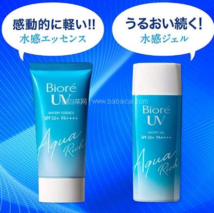 2019版 Biore 碧柔UV AquaRich水感防晒SPF50+ 整箱24支装,Biore最经典的防晒系列,2019全新升级,包括了水感精华和水感啫喱两种质地。依旧是标志性的蓝色包装,非常清爽,很适合夏天。蓝色包装上多了“ Aqua Rich”字样。外包装上标注的“世界初Micro Defense处方”,感觉很可靠。Biore碧柔水感防晒,最大的优势就是它的清爽使用感,水水的质地,即使重复涂抹也一点不粘腻,很适合夏天。新版很强的防晒效果,让它成为今年有力的销售竞争对手哦!