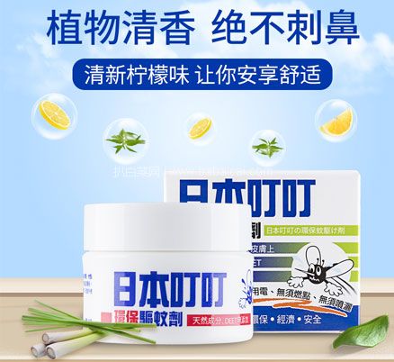 天猫商城:日本叮叮 环保驱蚊膏 35g 现价¥59,领¥20优惠券,券后实付¥39包邮包税    植物驱蚊,孕童皆可安心使用~