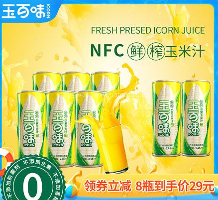 天猫商城:玉百味 NFC鲜榨水果玉米汁 245ml*8瓶 双重优惠后新低¥15元包邮 白菜!折合¥1.9/罐,券单领~