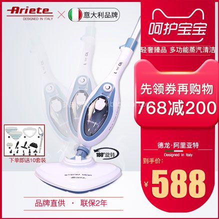 比618限时抢购价还便宜!新低白菜价!天猫国际Ariete海外旗舰店售价¥798,可叠加¥490优惠券 ,实付新低¥299包邮包税,怒降¥70白菜好价,88VIP下单可再95折,低至258元!同款京东PLUS会员也要¥489不含税。意大利德龙集团旗下,10合1多功能蒸汽拖把,可手持使用,1机多用,多达10个清洁附件,3300+评价,4.9分高好评。天猫国际购买地址>>