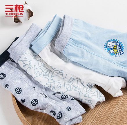 三枪 弹力莱卡棉平角/三角儿童内裤4条 ,舒肤弹力莱卡棉材质,高支细针罗纹带来的舒适感受,弹力十足,舒适修身、伸缩性强的弹性面料可以有效吸收湿气,使肌肤干爽舒适。