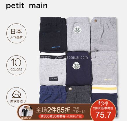 天猫商城petitmain童装旗舰店售价¥89,可领取¥20优惠券,券后实付¥69包邮,多款可选,80-130cm有货。日本超高人气童装品牌,婴儿A类安全标准,纯棉柔软亲肤,舒适顺滑,不皱免烫,不会起球,精细走线缝纫,宽松又弹力,宝宝自在舒展。天猫商城购买地址>>