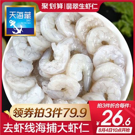 天猫商城:天海藏 鲜冻翡翠生虾仁500g  拍3件双重优惠后¥79.9元包邮,折合¥26.7元/斤