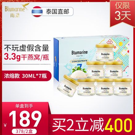 天猫商城:99%特浓!泰国 Blumarine 雨巢浓缩即食燕窝 30ml*7瓶 双重优惠后新低¥99元包邮 白菜!之前最低¥159~