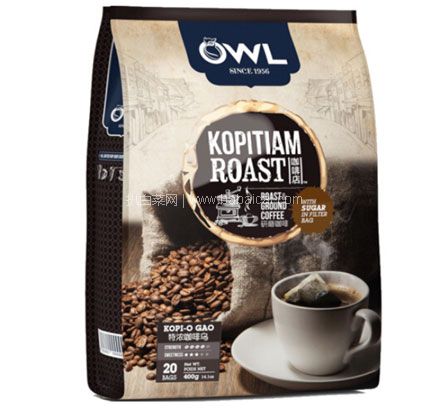 OWL猫头鹰 研磨系列袋泡特浓黑咖啡(特浓咖啡乌)产自马来西亚,由白砂糖以及咖啡豆研磨粉制作而成,不含植脂末。咖啡香气浓郁,口感丰富,20g*20条。