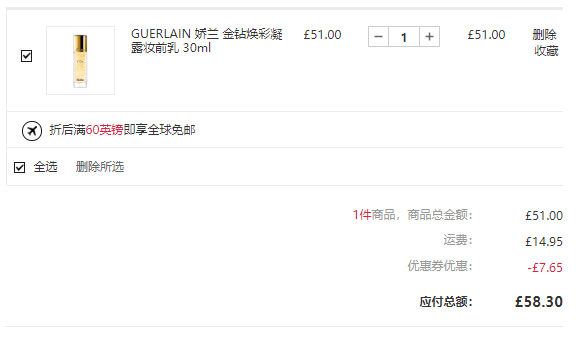 Feelunique:现有 GUERLAIN 娇兰 彩妆护肤8.5折促销直邮中国!    限时4小时!