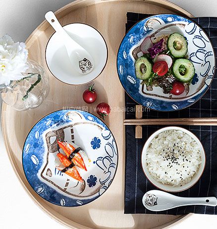 天猫目前釉下彩工艺,可爱的招财猫,4.5英寸饭碗*4个售价¥34.8,可使用¥20优惠券,实付¥14.8包邮,新低价,招财纳福系列餐具,釉下彩可微波,5寸款略贵。 天猫商城购买地址>>