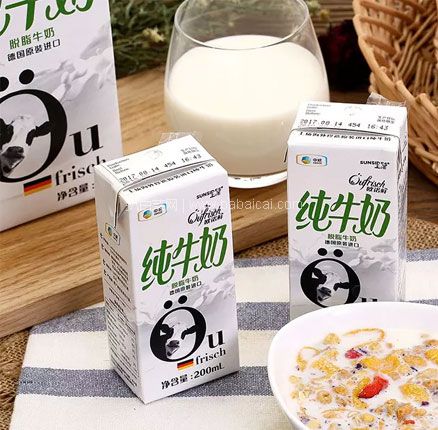 天猫商城:德国原装进口 SUNSIDES 脱脂牛奶 200ml*24盒 现价¥59元,领¥10元优惠券,券后¥49元包邮 日期新鲜~