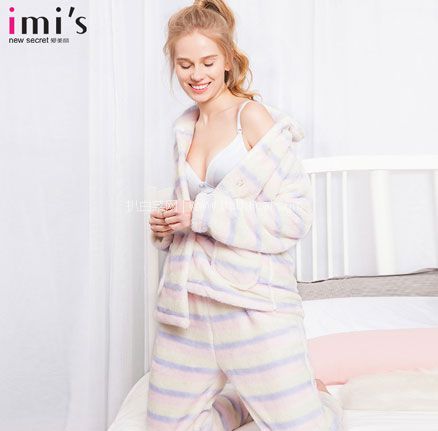 天猫商城:imis 爱美丽 女士条纹翻领 珊瑚毛绒 加厚家居服套装 现价¥199,领¥60优惠券,券后¥139包邮 加厚翻领,给予肩颈贴心温暖~