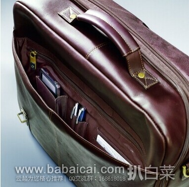 Samsonite Columbian Leather Flapover Case新秀丽17英寸真皮复古公文包,在Amazon顾客评价获得4.5星好评,整体尺寸为11.5x 42 x35.5厘米,100%真皮,皮质看起来质感很好。包包内部分三个隔层,最里层可用于放置文件夹等资料,并配有单独拉链,中间层可装下最大15.6寸的笔记本电脑,并且有加厚护垫保护安全,最外层具有三个口袋,可分类放置鼠标、充电器,并与中间层共用一拉链。外部口袋可用于放笔、记事本、名片夹等零碎物品,同时内部还有带拉链的安全口袋可用于放置一些重要的票据等。肩带有可调节软垫增强背负舒适度,另外还有一个皮革提手可背可提。