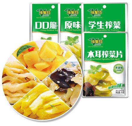 味聚特 木耳榨菜,秉承了榨菜加工的传统工艺,配以传统香料装坛存放,280天自然发酵成熟,经现代低盐艺术和高温减菌处理,低盐无防腐剂,真空包装,保持了传统榨菜鲜、香、嫩、脆的特点。