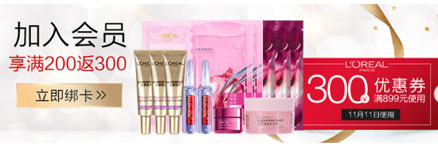 天猫欧莱雅双十一预告也开始啦,活动页面可领取优惠券,还可叠加津贴及红包,可以先在首页绑卡成为会员。