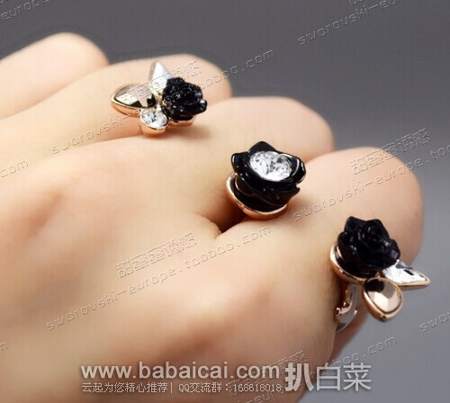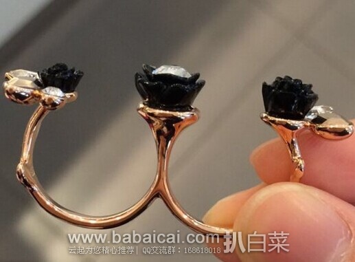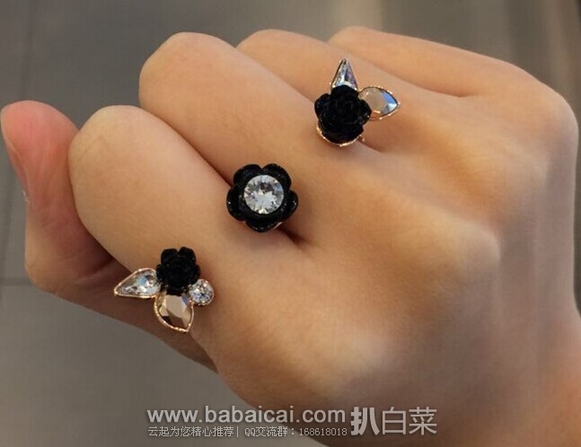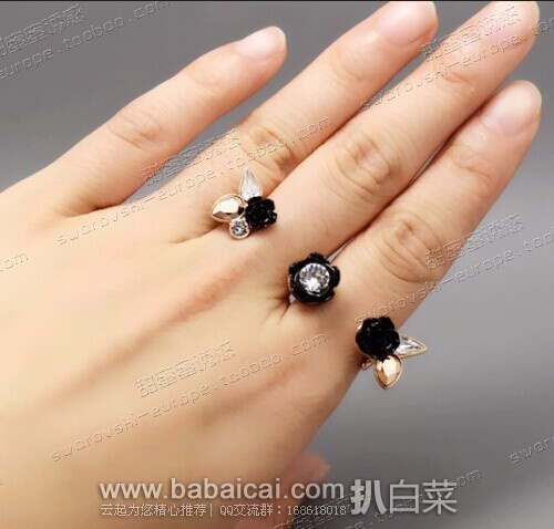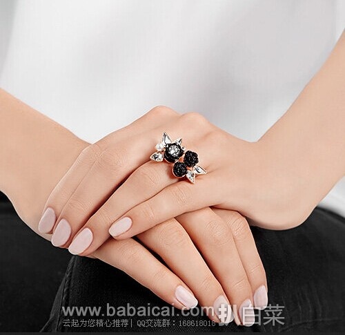 Swarovski:施华洛世奇 双环 黑玫瑰魅惑玫瑰水晶戒指原价$125 现5折$62.5 到手¥438,国内¥1420