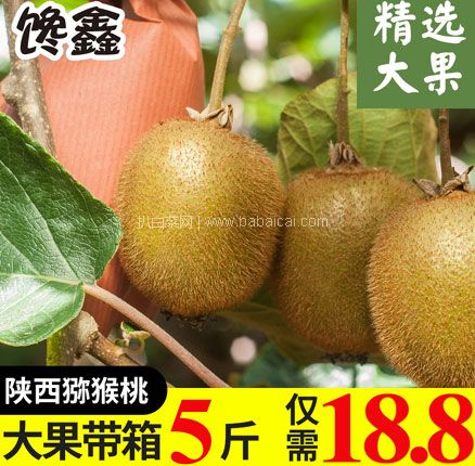 天猫商城:馋鑫 陕西周至 绿心猕猴桃5斤 现¥18.8,领¥5优惠券,券后¥13.8包邮到    果形敦实,个大,味道酸甜~