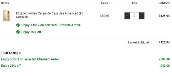 Lookfantastic英国官网:现有Elizabeth Arden精选商品买三免一+额外75折促销!已关闭评论 0