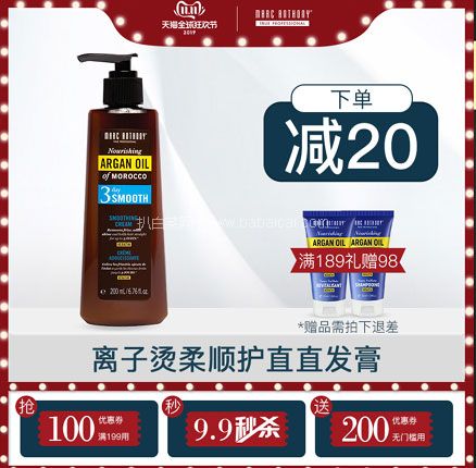天猫商城:Marc Anthony 马克·安东尼 不伤发免烫免夹直发造型膏 200ml 双重优惠新低¥65元包邮 好莱坞御用美发品牌,在家里做自己的直发造型师~