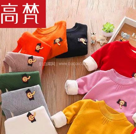 天猫商城:高梵 2019秋冬韩版男女中小童加绒打底套头毛衣 多色 现¥109,领¥40优惠券,券后¥69包邮 加绒加厚,亲肤面料,柔软细腻~