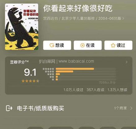 宫西从自己的童年记忆和育儿经验中获取创作灵感,绘本温馨、诙谐、结构曲折,萌趣温情之余不乏伤感,因而深受大量读者追捧。这套《你看起来好像很好吃》的原著绘本共计7册,16开铜版纸全彩印刷,13年由21世纪出版社引进出版,以“爱和善良”作为核心主题,适合3岁以上儿童阅读。