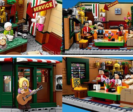 乐高IDEAS 21319 老友记 中央公园咖啡馆,包含1079颗粒,年龄定位16+,中国官方售价699元,于2019年9月1日正式发售 。完成后的模型尺寸为29*22*11cm 。同时,IDEAS 21319中央公园咖啡馆也是乐高集团为了纪念《 老友记 》开播25周年推出的特别纪念商品。官方套组选择了剧中六个老友闲谈打发时间的主要场景——中央公园咖啡馆。这座咖啡馆在莫妮卡公寓的附近,是一个位于纽约格林威治村的虚构的咖啡馆,但是在剧中占有举足轻重的地位和极高的出镜频率。这款老友记套装的结构布局几乎完全照搬了电视剧的布景,在片场可以看到的细节,乐高全部一一顾及,对比就可以看到,例如SERVICE的箭头指示牌、中央公园的LOGO、咖啡店入口的角度,甚至细节到每一盆花的摆放位置都能对应得上,令人赞叹。