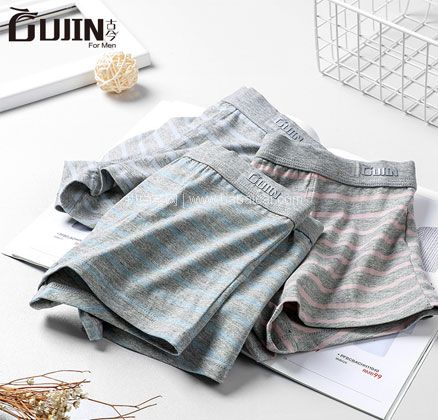 古今 男士弹力棉平角内裤3条装,优选40支精梳棉加入精品氨纶(95%棉+5%氨纶),柔软亲肤又富有弹力,吸湿亲肤,不勒小兄弟。经典条纹,简约大气,活性印染,舒适健康,3D立体U囊,更大空间,丁丁更舒坦。宽边腰带包边设计,弹力持久,舒适不紧勒。