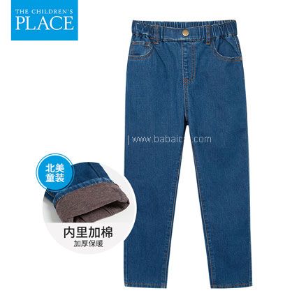 The Children's Place 2019新款女童加绒加厚牛仔裤 ,细腻的棉混纺面料,柔软舒适,耐磨耐脏,休闲简约,内里加绒,有效抵御寒风;罗刹纹松紧裤腰,不勒小肚子;时尚贴布印花设计,独特有型。 北美童装TOP品牌,潮童穿搭,优质面料,加绒加厚保暖,寒冷的秋冬季,给予宝宝更好的牛仔裤,性价比高的童装品牌。