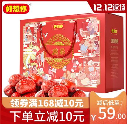 天猫商城:好想你 满彩免洗保鲜红枣年货礼盒 2000g 双重优惠后¥49元包邮 礼盒包装,送礼也不错~