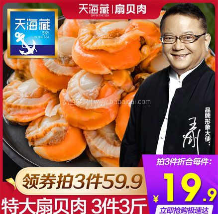 天海藏 蒜蓉粉丝贝 6枚共200g,天猫旗舰店 售价¥49.9,叠加¥30优惠券,实付¥19.9包邮到手,送扇贝肉500g,单赠品1斤扇贝肉就很划算了,一般烧烤店一枚5块钱。天猫商城购买地址>>