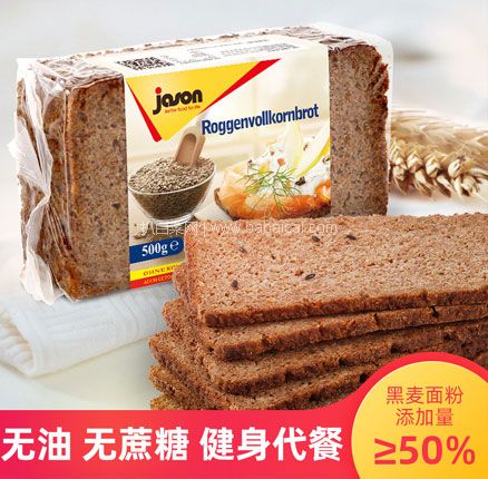 天猫商城:白菜!德国进口 Jason 捷森 低脂面包 500g*2袋 现¥42.9,领¥30优惠券,券后¥12.9包邮,折合约¥6.45/袋 饱腹代餐,顺带减脂~