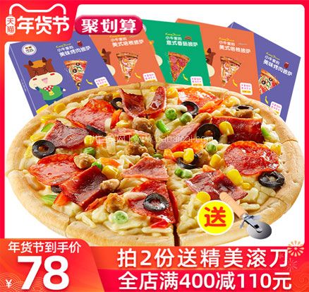 天猫商城小牛凯西旗舰店售价¥79,可使用¥30优惠券,实付¥49包邮,线下实体店同款,手工制作,新鲜料足,三种口味,原料实料好披萨,饼底揉发到位,香酥可口,料馅充足。天猫商城购买地址>>