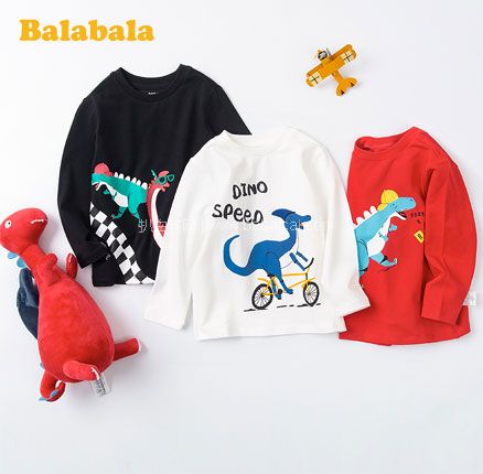 巴拉巴拉 2020新款 男童长袖T恤 ,舒适纯棉面料,很柔软、不扎人,透气抗皱,微弹不束缚,恐龙装饰,童趣可爱。
