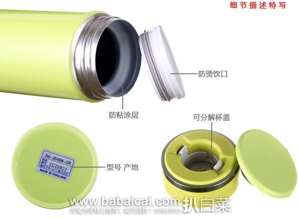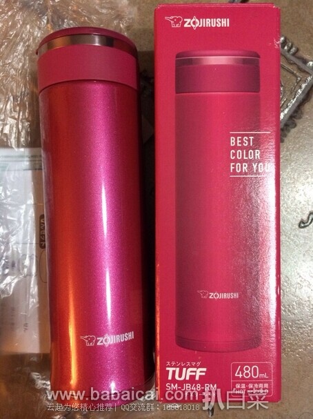 Zojirushi象印 Zojirushi SM-JB48RM Tuff Mug 不锈钢双层真空保温杯,规格480ml,属于象印SLiT超轻巧系列 ,特点就是小巧,可以单手操作,便于携带;采用304真空不锈钢材质内胆,内胆防沾涂层,可分离中栓,轻松拆卸,方便清洗。树脂饮水口,更安全、舒心。广口设计,口径约4cm,更容易放入冰块。