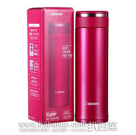 Zojirushi象印 SM-JB48RM 不锈钢双层真空保温杯480ml特价$24.98,直邮无税 运费仅$3.04,到手¥174