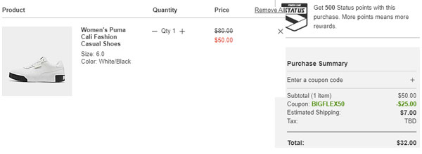 好消息!可以正常下单,不砍单!Finish Line终点线美国官网现有精选商品额外5折大促活动!折扣码:BIGFLEX50,有效期至北京时间2月19日。NIKE\NB\adidas\Reebok\ASICS等多个知名运动休闲品牌鞋子好价可撸!其中这款PUMA X Cali 经典女士黑白配色休闲鞋,售价降至$50,用码折后价$25,美国境内运费$7,凑单购买更划算,目前女士6码起有货。Finish Line终点线美国官网购买地址>>
