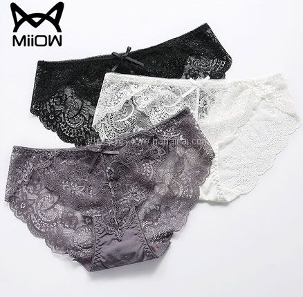 天猫商城:MiiOW 猫人 纯棉裆全蕾丝无痕女士三角内裤 3条装 多色 现¥49.9,领¥30优惠券,券后¥19.9元包邮 新低白菜价!