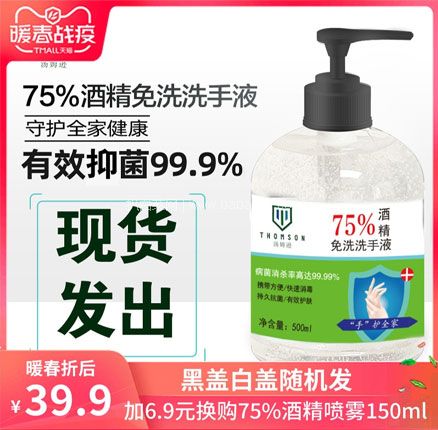 天猫商城:汤姆逊 消字号75%酒精免水洗手液500ml 现¥39.9,领¥25优惠券,券后¥14.9元包邮    免洗速干,预防交叉感染,有效杀菌99.9%~