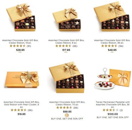 Godiva美国官网现精选巧克力礼盒第二件半价促销,无需用码,页面直接显示促销价;订单满$60美国境内免邮费,活动至北京时间3月17号12点;GODIVA歌帝梵美国官网活动地址>>