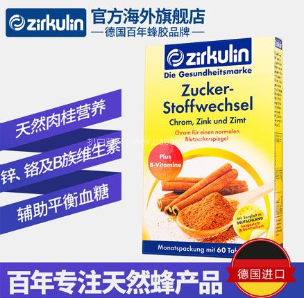 天猫商城:调节血糖,德国 Zirkulin 哲库林 进口肉桂片 60片 双重优惠后¥64包邮 调节血糖,促进消化,促进新陈代谢!