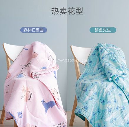 天猫商城:梦洁宝贝 儿童可水洗夏凉被空调被1.2~2米 2色 双重优惠后¥58元起包邮 无机纤维,不易滋生细菌,给宝宝舒适触感~