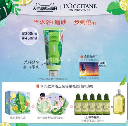 天猫商城:L’OCCITANE 欧舒丹 活力马鞭草磨砂啫喱 200ml(赠 马鞭草沐浴共250ml+星光护肤体验装*1) 现¥220,领¥10优惠券,券后¥210包邮已关闭评论 0
