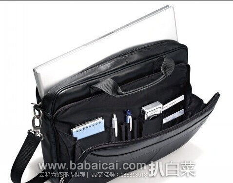 Samsonite Luggage Leather Slim Briefcase新秀丽真皮公文包,采用真皮材料制作,尺寸为40*29.4*6cm,分为前袋、后袋结构。前袋分区,可分别存放文件,笔类,名片,移动硬盘等物品。中间的笔记本收纳仓位可容纳15.6寸的笔记本电脑。带有可拆卸式肩带和手提带,可提、可背。外观简约时尚,商务人士首选。