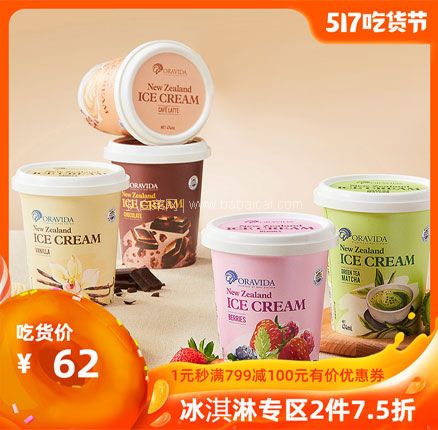 天猫商城:兰维乐 新西兰原装进口 冰淇淋 474ml  多口味 下单2件双重优惠后新低¥78元包邮,折合¥39元/件