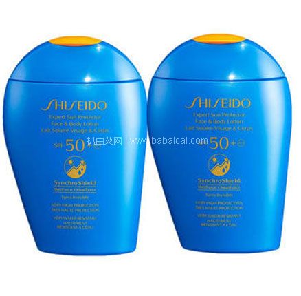SHISEIDO 资生堂 新艳阳夏臻效水动力防晒乳液 蓝胖子 spf50,资生堂所推出的防晒产品都加入独有的Super Veil-UV 360技术,此技术能均匀地将防UV保护膜覆盖于纹理凹凸细微的肌肤上,以防止因防晒霜厚薄不匀所导致的意外灼伤。再配合革命性防晒科技WetForce技术,新配方揉合稳定而带有负离子的「离子矿物感应体」,与水及汗里的正离子矿物质紧密结合,形成高效防水膜层。适合任何肌肤,包括敏感肌及儿童脆弱的肌肤。
