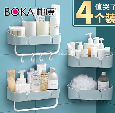 天猫商城:柏康 卫生间置物架 2个装 含带杆款 现¥9.9元,领¥3元优惠券,券后¥6.9元包邮    无痕粘胶,免打孔,洗漱用品一套收纳~