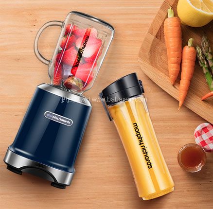 morphy richards 摩飞 MR9500 榨汁机,24000转/分钟,功率300W,机身采用ABS材质,按压旋转,连锁设计,对准机身位置,旋扣锁位,机身稳定转动;食品级不锈钢立体刀头。强大动力,打出的果汁口感细腻,保留营养。