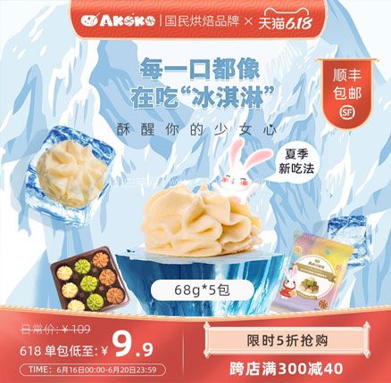 天猫商城AKOKO烘焙旗舰店68g*5袋售价¥99.5,可使用¥50优惠券,实付¥49.5包邮。将曲奇置入冰箱冷冻数小时,体验入口即化的冰淇淋口感。天猫商城购买地址>>