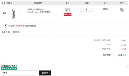 Feelunique中文官网:Elizabeth Arden 伊丽莎白雅顿 线上67折+额外82折促销直邮中国已关闭评论 0