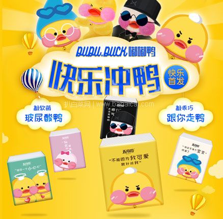 一包不到3毛钱,五月花携手DUDU.DUCK 玻尿酸鸭原浆手帕纸30包,0添加不漂白,3层加厚210*210mm,每包8张,柔软舒适,强韧、湿水不易破,