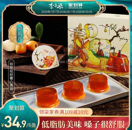天猫商城:李子柒 秋梨枇杷膏果冻70g*6个 现¥34.9,领¥5优惠券,券后¥29.9元包邮已关闭评论 0