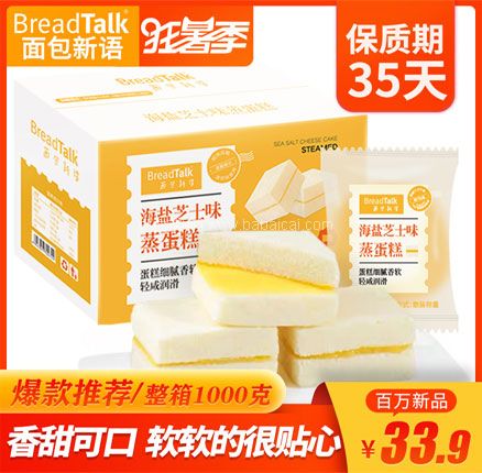天猫商城:面包新语 海盐芝士味蒸蛋糕 1000g整箱 双重优惠后¥23.9元包邮 奶香浓郁,入口即化,口感超级细腻~